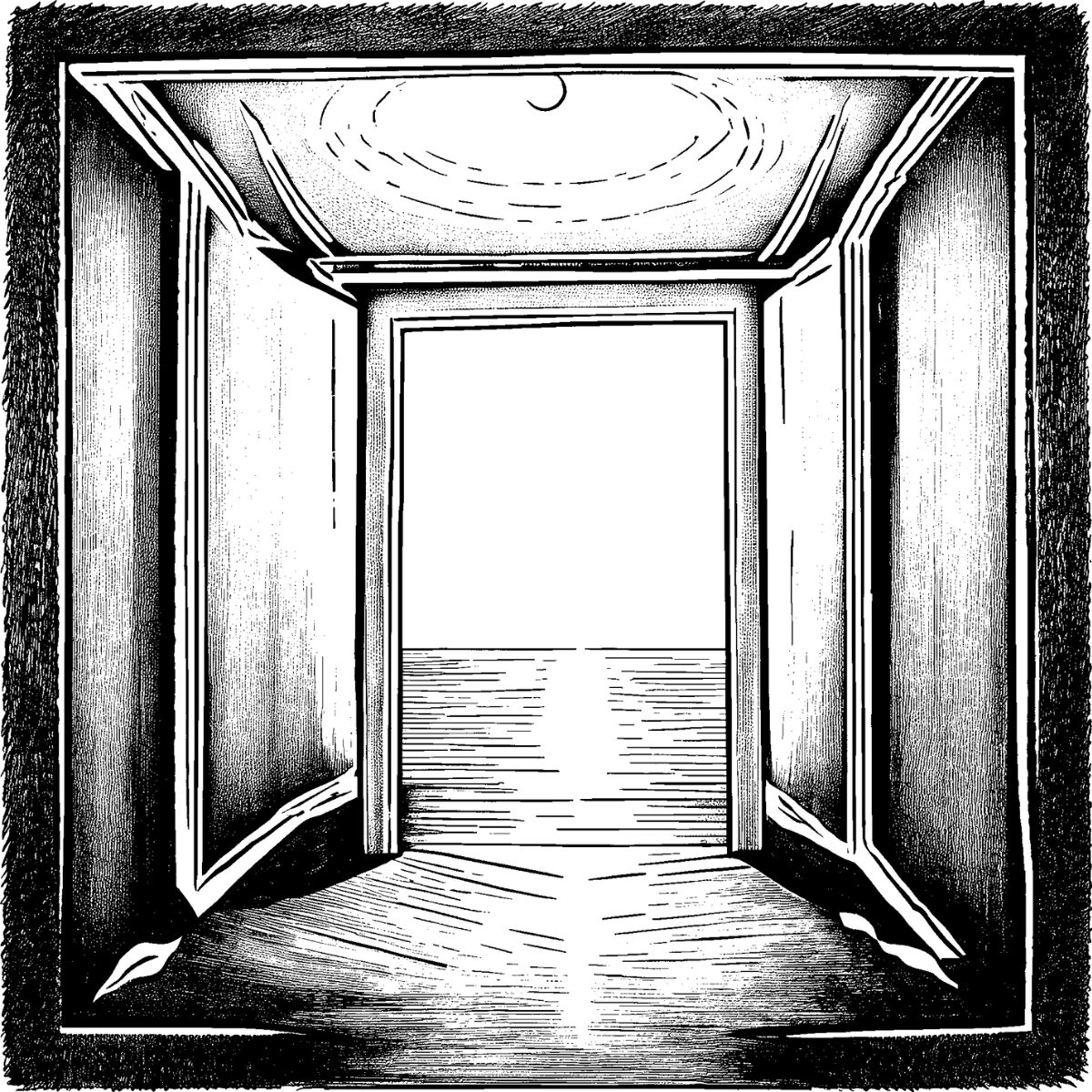 I’d arrived with the idea that someone would surely come along the road eventually. A little car with a magician in it. A group of otherworldly beings. A man with a donkey. An old woman with a bundle of sticks on her back. Merchants going to a fair in a nearby town. A circus troupe. A truck that breaks down right on the spot and has to leave its load of furniture behind. Nuns and mummers and dancing children. A pack of wolfish dogs. A samba band. Hoop dancers. A flock of sheep with the shepherd and dogs following behind. I realized these were all imaginary. The place was as still as it had been when I first arrived by liminal transport. I stepped up on the rock to poke my head through the flat grey mist just above me. It was nearer than I thought. I raised my hand through it, crying out, “Okay, that’s enough.”