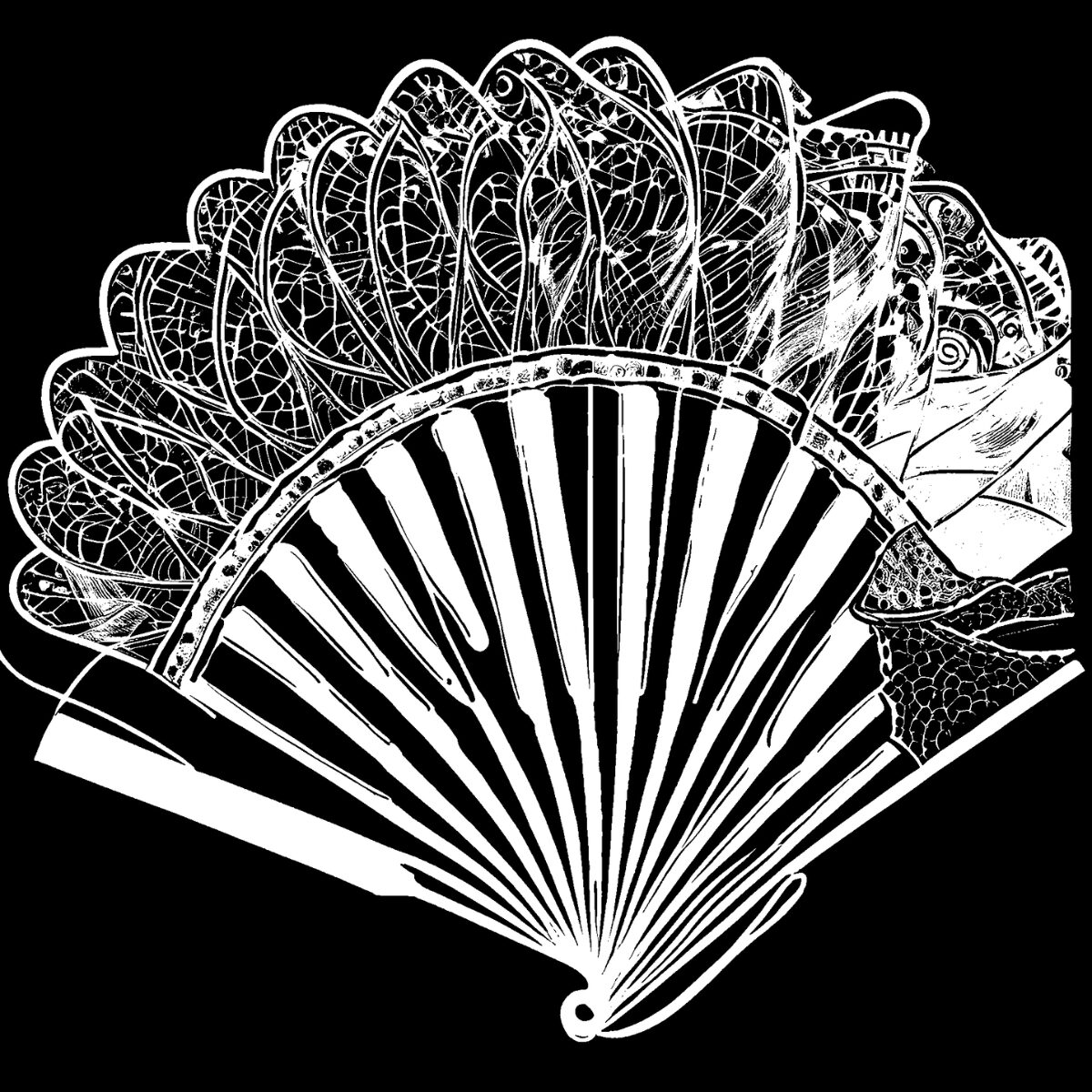 The more I looked at it, the more it seemed not to be a French fan as I’d originally thought. The drawings of the figures and nature gods looked crude, like imitations, as if they were copies. Perhaps the silk is not that old after all… and the copper was all new, shiny, not at all oxidized. Was it a fake antique, recently made? I had doubt. But then I couldn’t ever doubt the feeling I had received along with this gift. A reorienting dizzying electron dance of momentary suspension. I saw a face then, a glimpse of a photo, black and white. Did the eyes flash? What were they telling me?
