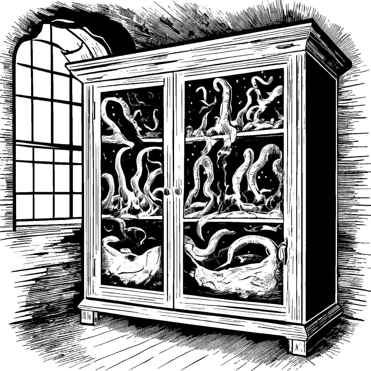 Looking inside I saw a small white wormy creature with human eyes. It seemed to expand to monstrous proportions in my mind’s eye, just for a flash. And in an instant it was the safe little creature again. Then there was a small nest of them, several, suddenly multiplying, falling out of the box, dangling on the sides. I tried to pull them all back in, and where my hand touched them was burned. They were burned and I was burned. When I touched them they withered, shrank and died. I put them in the box anyways. As soon as I caught them, then stopped multiplying. It burned me and was painful but I touched each one in the box with my fingertip. They all contorted in pain, looking at me with pleading eyes. “We aren’t so bad. Why are you hurting us?” then I closed the box. I knew just doing that wasn’t enough. Their shadows and afterimages were still on my mind and I was feeling raw and disturbed.